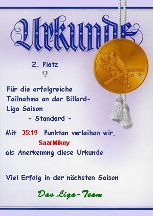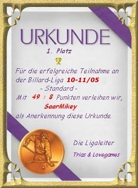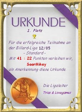 | Dezember 2005 | 1 | 1. | Urkunde - 2. Meistertitel |