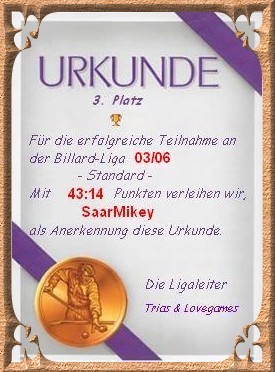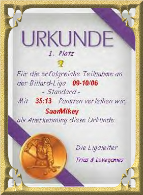 Diese Urkunde haben Trias und ich von xxx Mario G xxx für unsere Arbeit in der Liga bekommen.