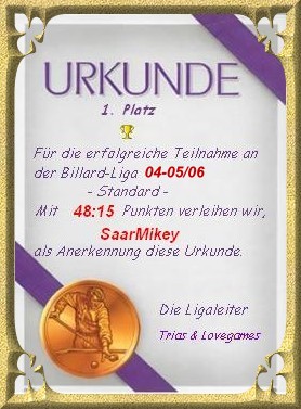 | April/Mai 2006 | 1 | 1. | Urkunde - 3. Meistertitel |